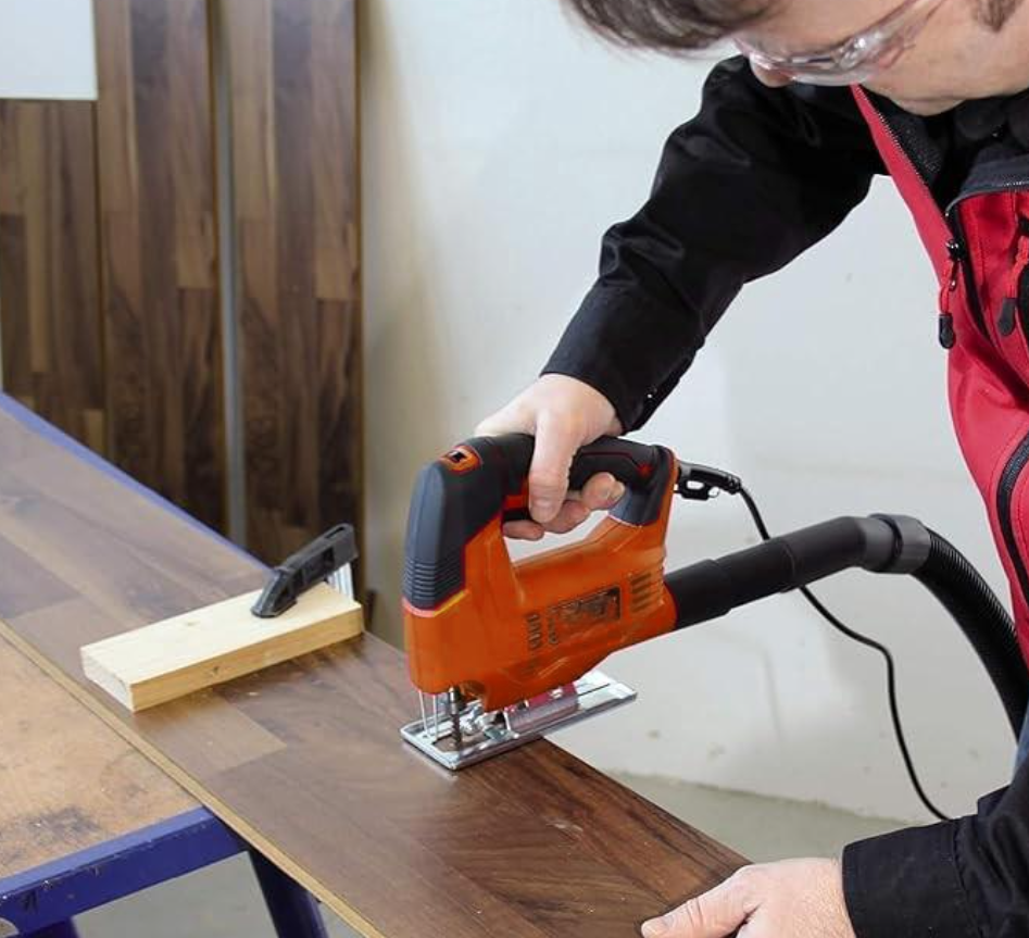 Potenza 400 Watt. Numero corse 0 - 3000/min. Profondità di taglio nel legno 55mm. Profondità di taglio nell'acciaio 6mm. Attacco Black & Decker.