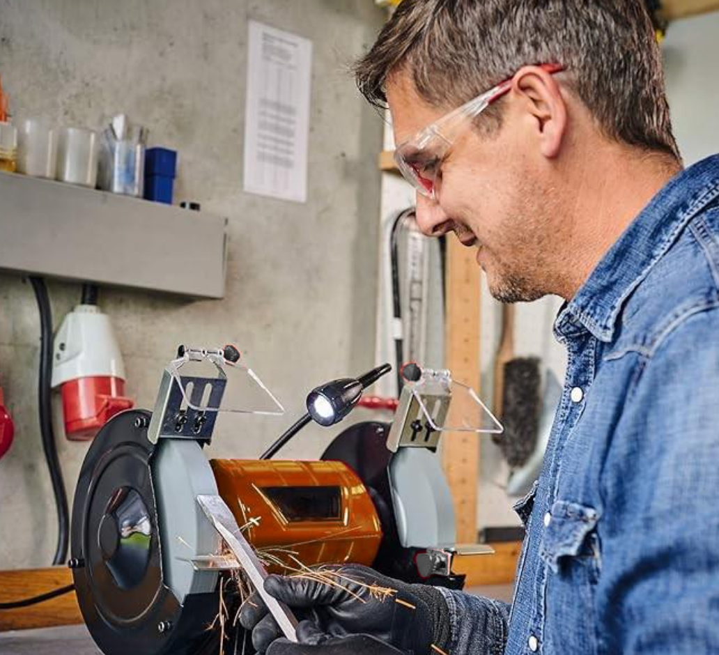 Dimensioni mole Ø 150x16 mm, nr.giri 2950/min. Protezione laterale delle mole di sicurezza. Potenza 150 Watt. Tensione 230V/50Hz.