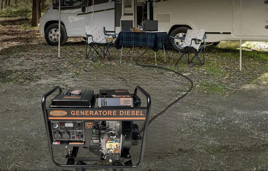 Generatore diesel 4,8/5.0KW. Tensione nominale: 220V/50HZ, monofase. Uscita CC: 12V/8,3 A. Dimensione: 730x470x700mm. Peso 120kg. Modello motore: LT186F a iniezione diretta raffreddato ad aria. Sistema di avviamento: elettrico co batteria. Allarme olio basso. Sistema di interruzione automatica del sovraccarico AVR, uscita stabile. Basso consumo di olio, bassa rumorosità, compreso di ruote per facilitarne lo spostamento.