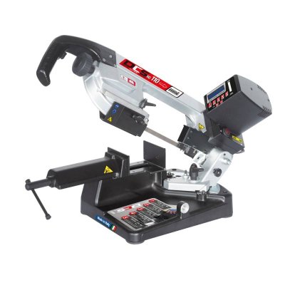 Motore monofase 950 Watt. Capacità di taglio: tondo Ø 105 mm a 0° e Ø 74 mm a 45°, rettangolare 110x85 mm a 0° e 75x37 mm a 45°, quadro 100x100 mm a 0° e 72x72 a 45°. Angolo di taglio regolabile da 0° a 45°. Rivoluzionario sistema di controllo elettronico che garantisce un taglio ottimale nelle principali condizioni di utilizzo tramite 5 modalità di lavoro pre impostate. Velocità lama (mt/min): 30÷80. Dentatura Z/1": 8/12. Indicatore di sovraccarico di utilizzo per evitare l'eccessivo sforzo del motore, possibili rotture della lama e tagli imprecisi. Innovativo tendilama frizionato per il controllo e la regolazione della corretta tensione della lama (brevettato). Robusta base in alluminio pressofuso con morsa integrata. In dotazione: Asta fermo barra regolabile per l'esecuzione di tagli in serie (L=500 mm), Filtro per l'abbattimento dei disturbi elettromagnetici conforme alle normative vigenti. Pulsante di avvio in bassa tensione. Peso 17Kg. Alimentazione 230V 50Hz.
