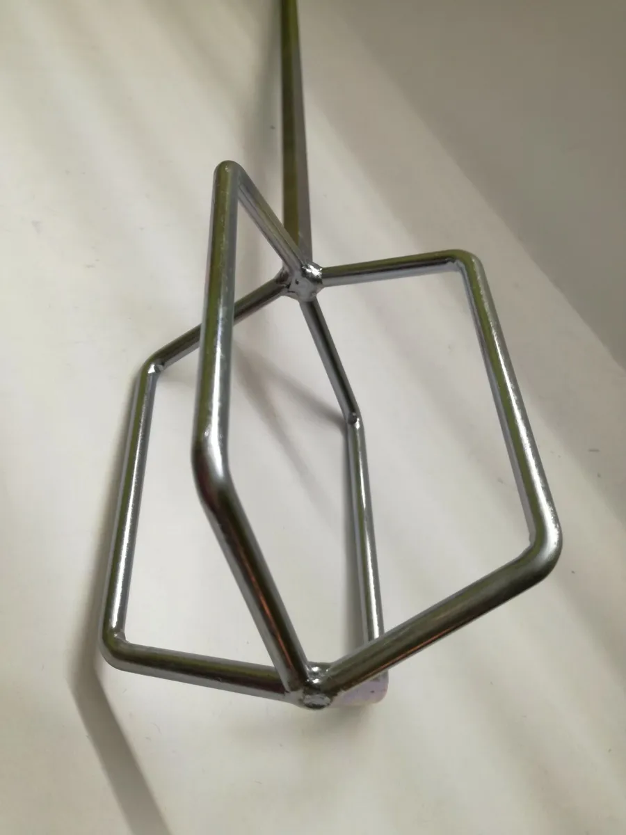 In acciaio zincato con attacco a sezione esagonale. Ideale per la miscelazione di materiali di alta viscosità come materiali autolivellanti, adesivi, sigillanti e miscele epossidiche.