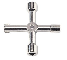 In acciaio cromato. Idonea per l'apertura di cassette per contatori gas, Enel, pannelli di comandi elettrici, manichette antincendio, cancelli automatici, torni per officina, compressori.