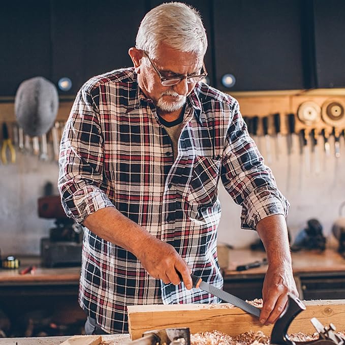 Con manico. Contenuto: 1 lima piatta, 1 lima mezza tonda, 1 lima tonda.