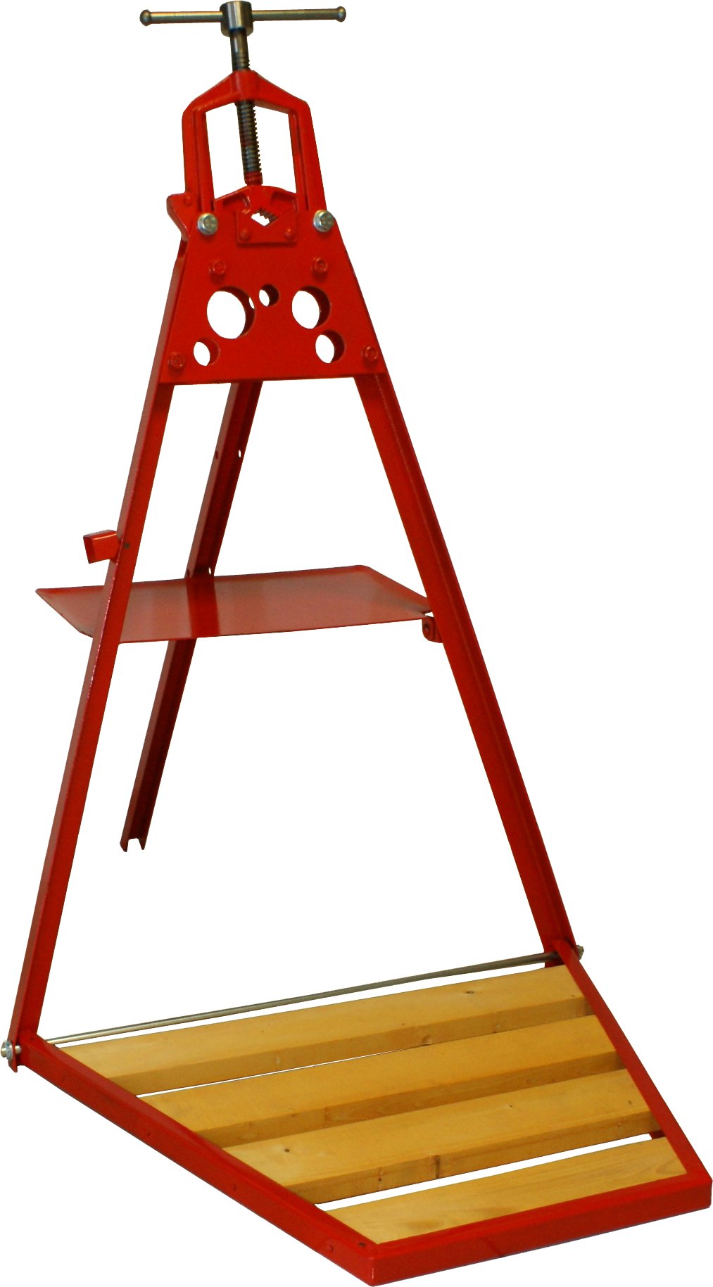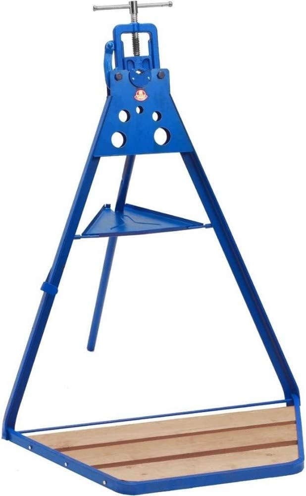 Morsa ribaltabile in acciaio forgiato. Piastra forata per curvare tubi, ripiano di appoggio per attrezzi e pedana ribaltabile.