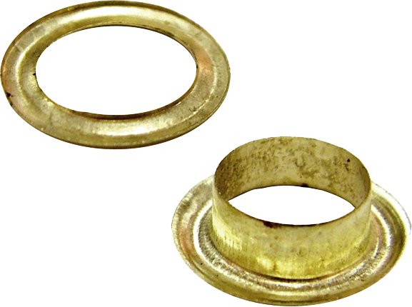 In ferro ottonato, maschio e femmina. Diametro del foro centrale mm.10.