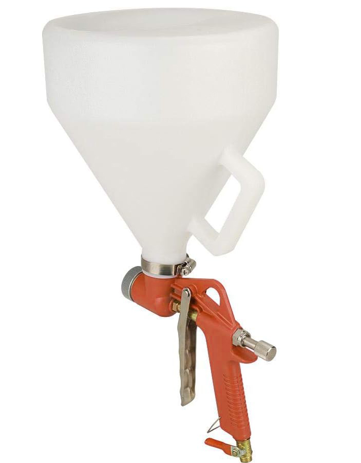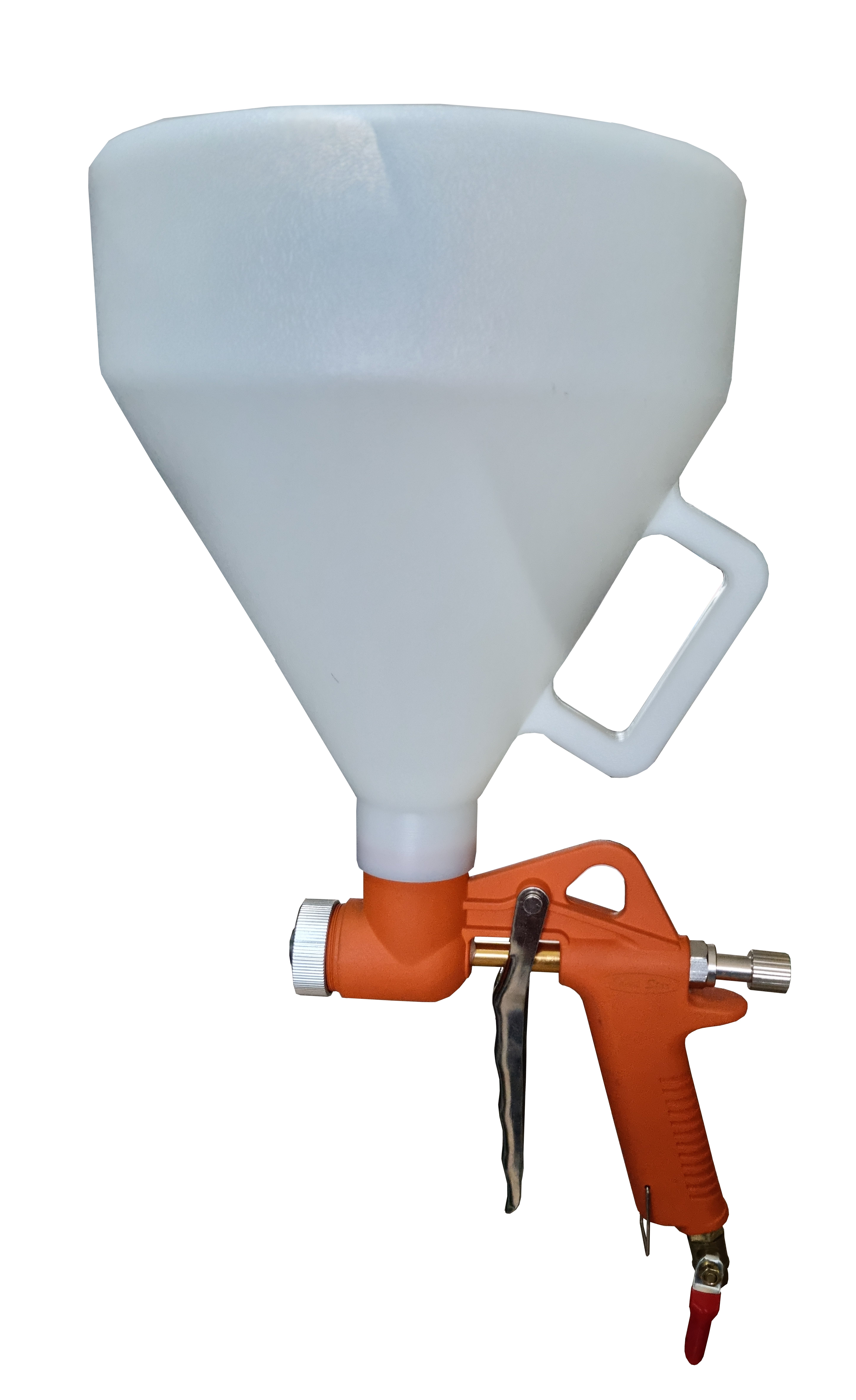 Usata per qualsiasi decorazione e per applicare facilmente e senza grande sforzo materiali come pittura murale, gesso,intonaco e quarzo fino a 6 mm, quarzo secco e intonaco fino a 8 mm, in quanto dotato di tre ugelli da 4,0, 6,0 e 8,0 mm. La tramoggia in plastica ha una capacita’ di 6lt e una maniglia sulla tazza che lo rende facile da usare. Pressione dell'aria: 4,0-8 bar / 60-115 psi. Ingresso aria: filettatura da 1/4" piu’ attacco rapido incluso. Larghezza del modello: circa 28 cm Consumo d'aria: 8,0-14 cfm.