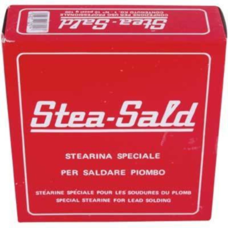 Stearina speciale per saldare a stagno congiunzioni di tubazioni in piombo con piombo, ottone, rame, ferro, zinco negli impianti idraulici. Ha potere disossidante, fa scorrere lo stagno e facilita la saldatura.