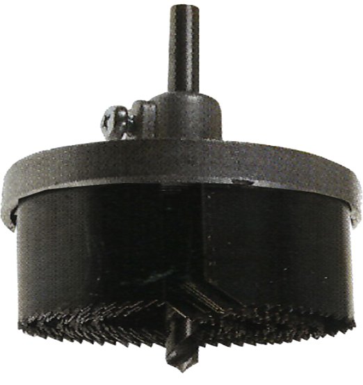 Con 5 lame in acciaio brunito a corpo unico. Adattatore con punta di centraggio e codolo circolare. Per forare legno, cartongesso e plastica. Profondità di taglio 40 mm.