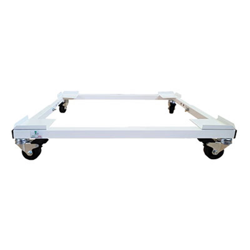 Totalmente realizzato in acciaio. Ampi angoli per il contenimento. Adatto a tutti i tipi di lavatrici o elettrodomestici. Dotato di feltrini antiscivolo. Ruote industriali con freno Ø 50 mm.