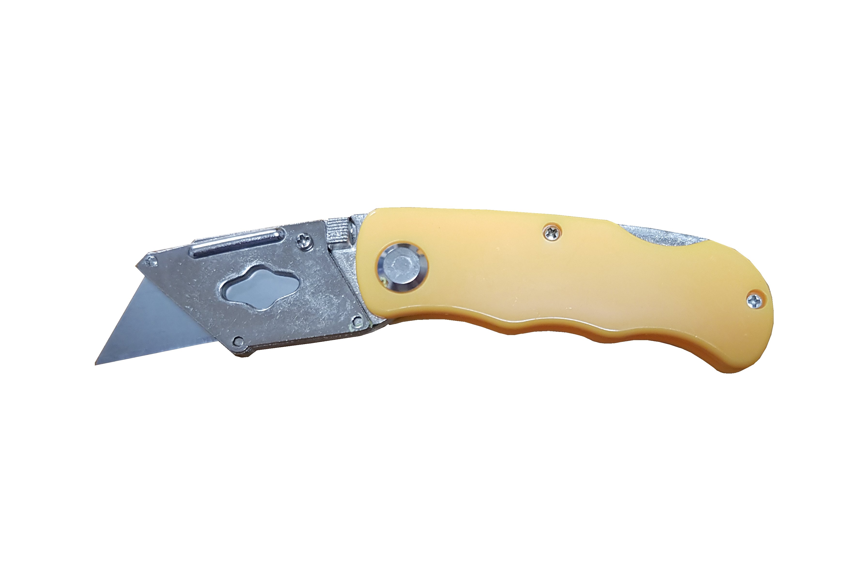 Corpo metallico. Manico in plastica. Pulsante con blocco chiusura. Pulsante cambio lama. In dotazione 5 lame di ricambio.