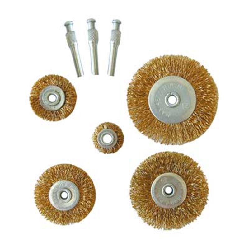 Composto da: 5 spazzole circolari Ø mm.30-40-50-65-75 e 3 gambi Ø mm.6.