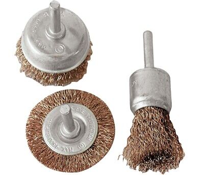Composto da: spazzola circolare con gambo Ø mm.75, spazzola a tazza con gambo Ø mm.75, spazzola a pennello con gambo Ø mm.25.