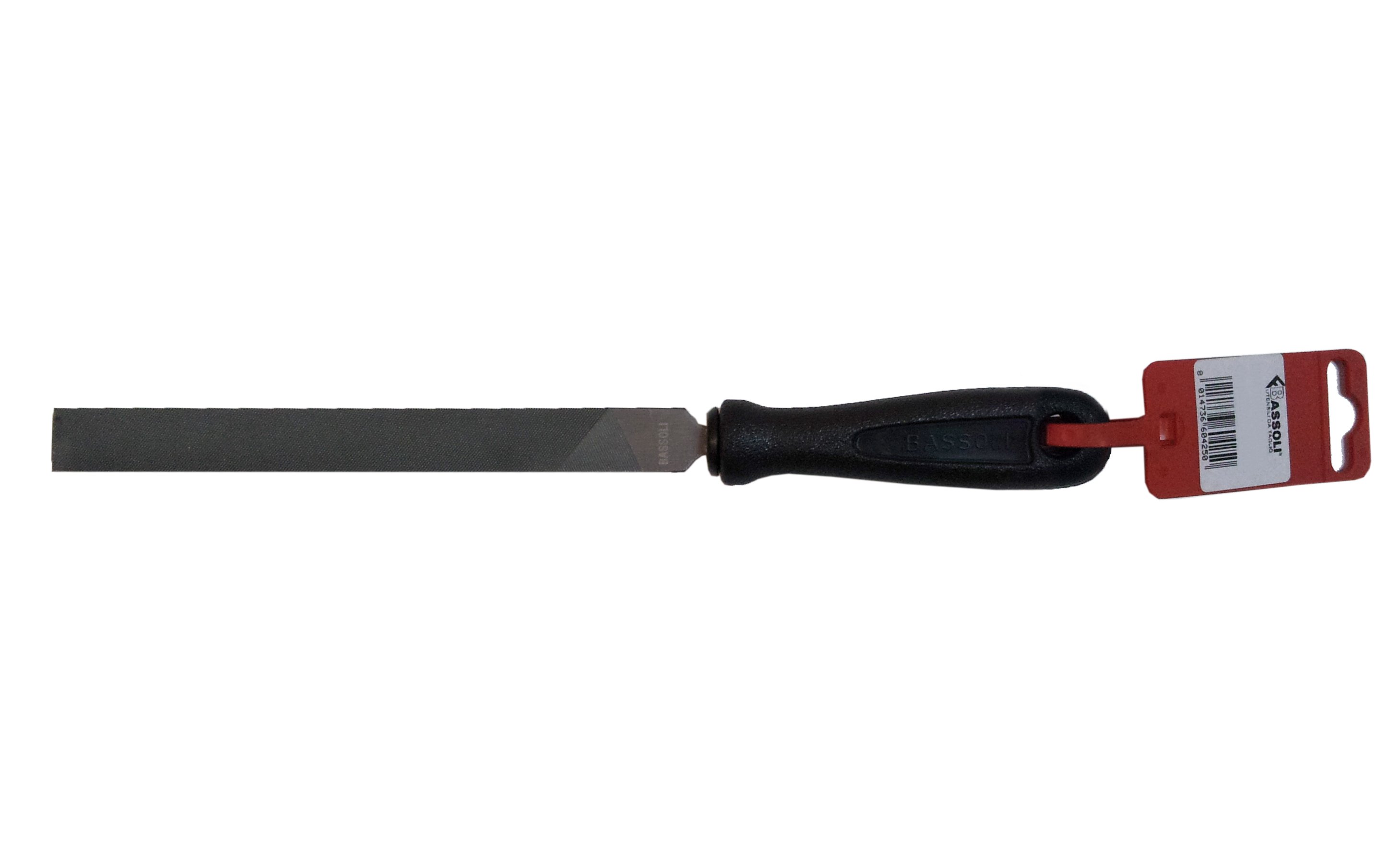 Con manico in plastica e appendino. Taglio mezzo dolce. Utilizzata in officina e nel fai da te per lavori generici su acciaio, ferro, metalli non ferrosi.