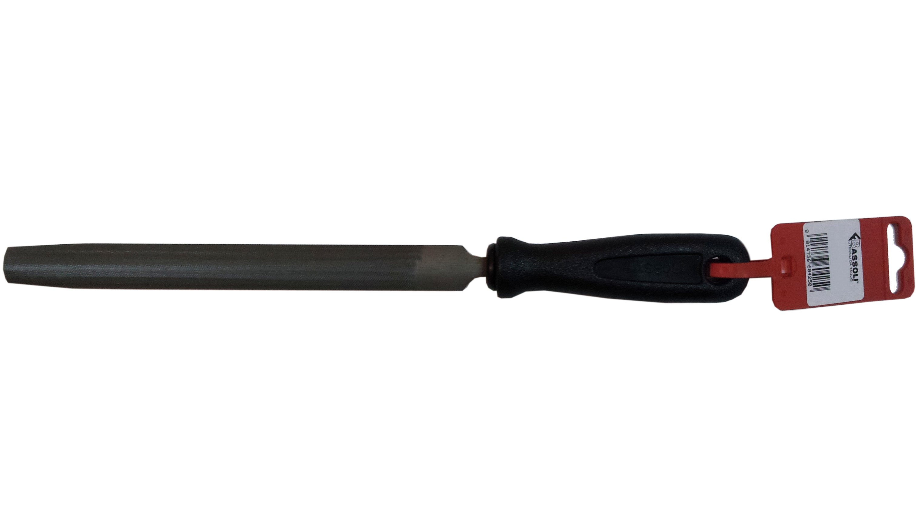 Con manico in plastica e appendino. Taglio mezzo dolce. Utilizzata in officina e nel fai da te per lavori generici su acciaio, ferro, metalli non ferrosi.