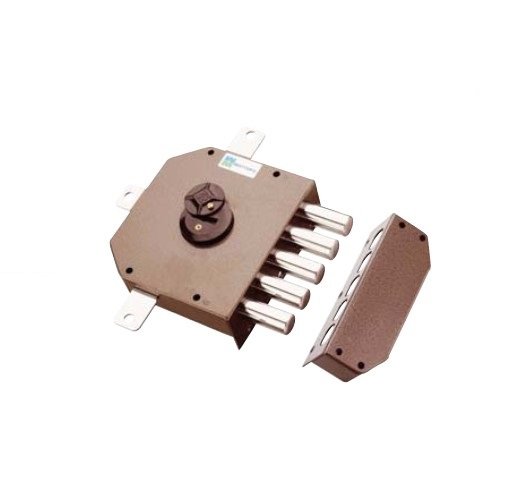 Quintuplice senza mezzo giro. 4 Mandate, corsa chiavistelli Ø 40 mm. Corsa aste mm. 17. Interasse mm. 25. Dimensione scatola mm 132x146. In dotazione 3 chiavi.
