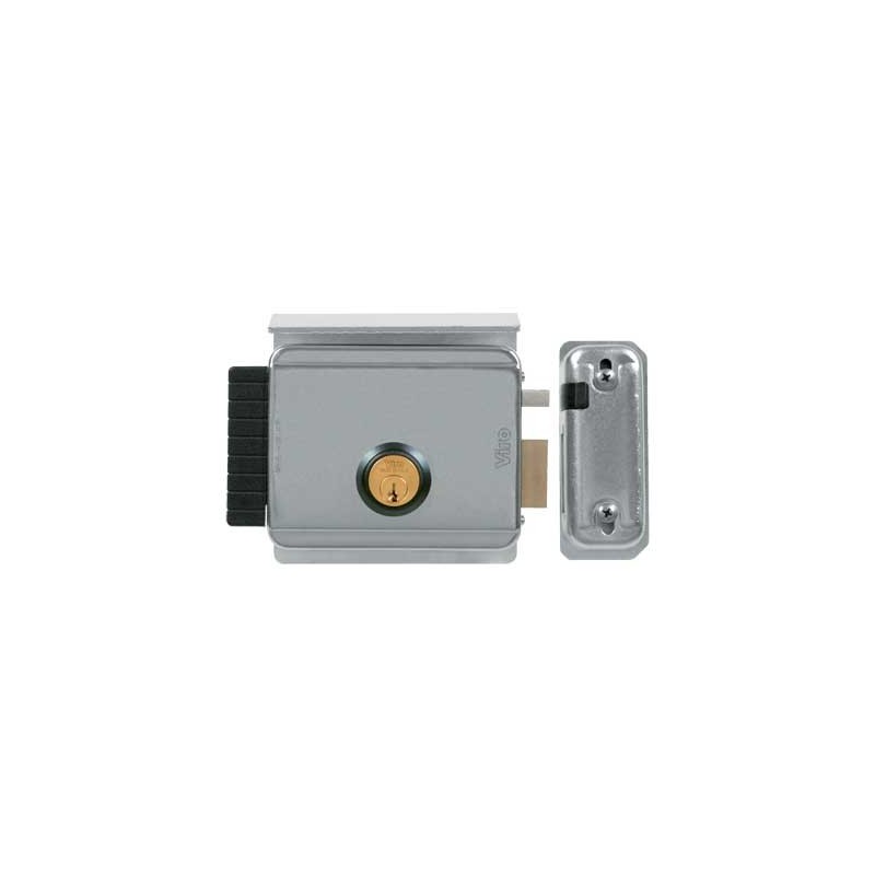 Cilindro interno ed esterno fisso. Scrocco autobloccato a serratura chiusa. Espulsore separato dallo scrocco per garantire il funzionamento della serratura anche in caso di movimenti verticali fra serratura e controbocchetta. Alimentazione 12V. Fornita di controbocchetta e tettoia parapioggia. Scatola mm.127,5x103,5.