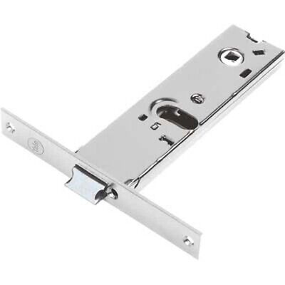 Scrocco reversibile e catenaccio incorporato ad 1 mandata. Interasse maniglia/cilindro mm.48. Foro per cilindro ovale e quadro maniglia mm.8.