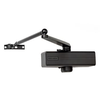 Unico corpo in ghisa, custodia di finitura in ABS. Forza di chiusura variabile EN 2-5. Fermaporta integrato di facile e precisa regolazione. velocità di chiusura regolabile tra 180° e 0°. Colpo finale regolabile tra 15° e 0° tramite tenditore del braccio. Applicabile su porte con lungh. cm.85-125. Finitura colore nero.