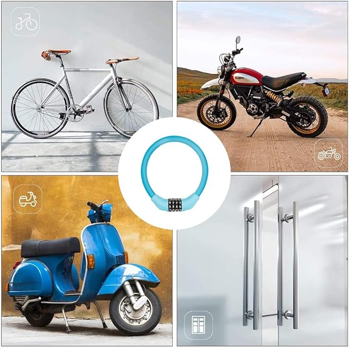 Fune in acciaio zincata ricoperta da pvc. Chiusura a combinazione personalizzabile.