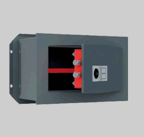 Cassa in acciaio di spessore 2 mm. Alette in acciaio ripiegate con funzione antistrappo. Cornice in acciaio di spessore 8 mm. Sportello in acciaio di spessore 8 mm. Meccanismo in acciaio a 6 gorges con profondità variabili ed indipendenti. Elevato numero di cifrature possibili. Cerniere costituite da una piastra ripiegata in acciaio di spessore 4 mm saldate allo sportello e fissate alla cornice con perno in acciaio da 13 mm. Catenacci rotanti antitaglio. Due chiavi in zama a doppia mappa in dotazione.