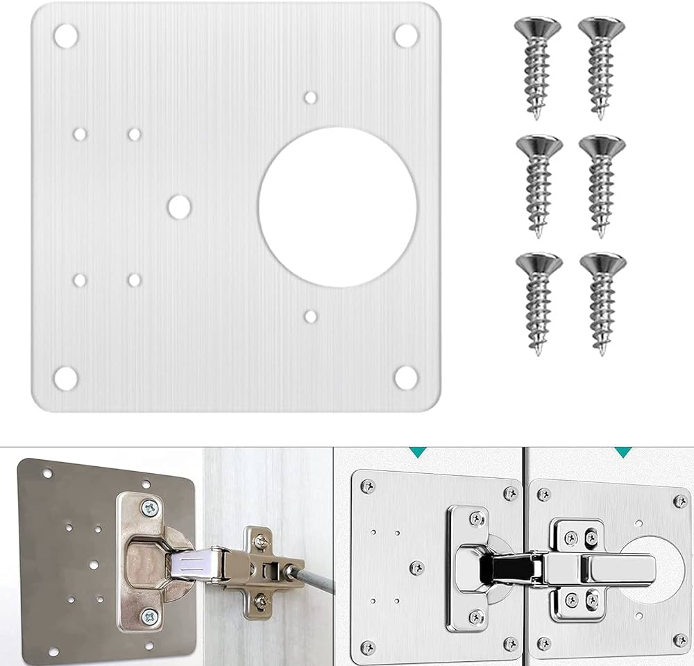 In acciaio inox satinato. Ideale per riparare i punti di ancoraggio delle ante rovinate. Con foro. Fornito con viti di fissaggio.