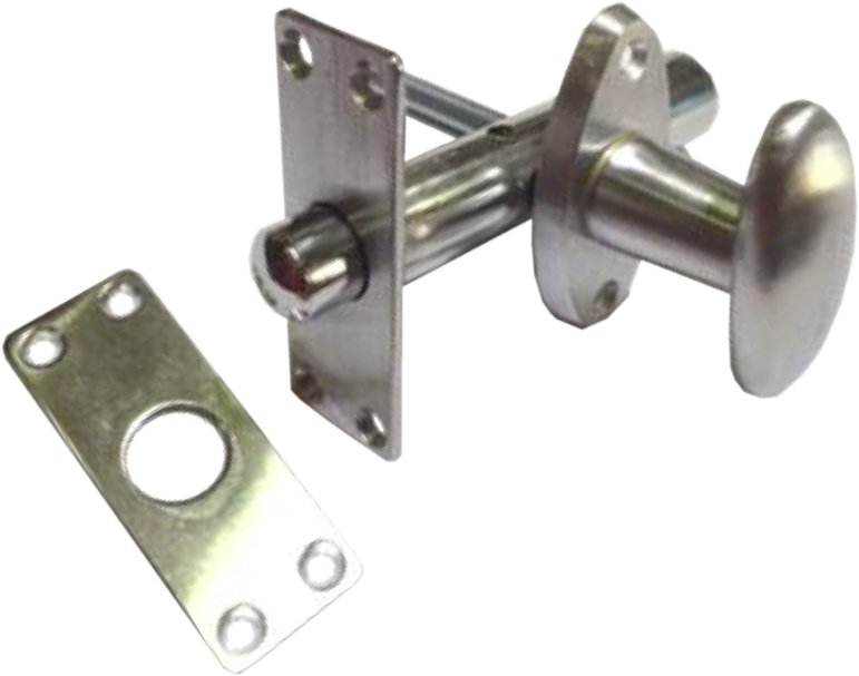 In ottone. Per porte in legno e corazzate. Pomolo girevole con catenaccio scorrevole a cremagliera.