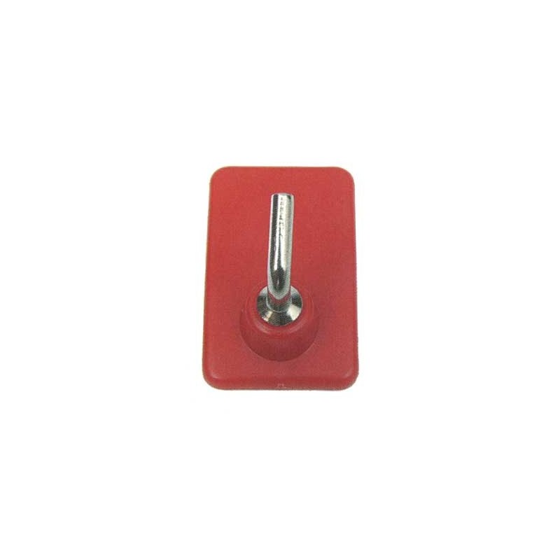 In plastica autoadesivo con gancio in metallo.