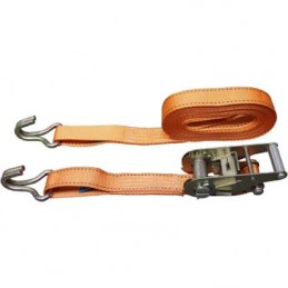 Nastro in poliestere ad alta tenacità. Sistema di ancoraggio con cricchetto tenditore da kg.1000 e gancio a uncino.
