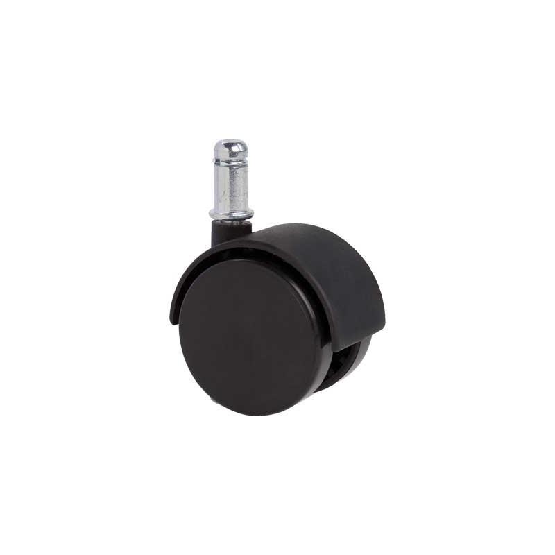 Supporto a perno liscio ad innesto girevole in acciaio. Ruota gemellata in poliammide nera.