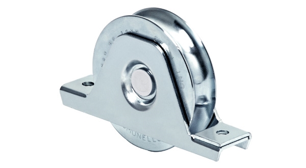 In acciaio zincato. A 1 cuscinetto a sfera.