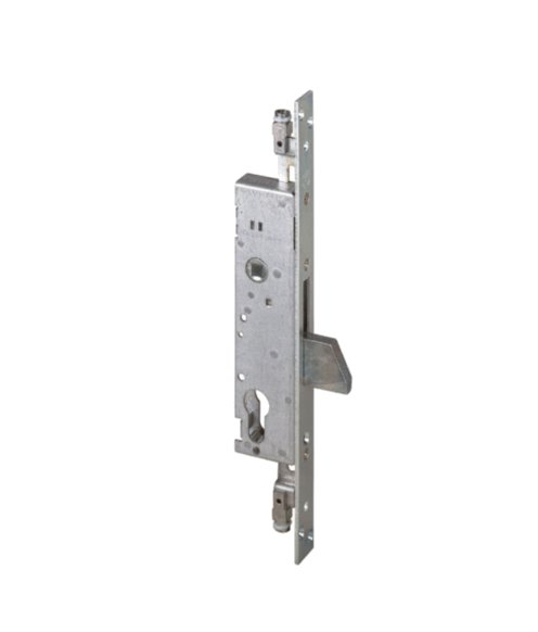 1 Mandata. Interasse 85 mm. Frontale in acciaio inox 25 mm. Corsa rinvii 25 mm. Scatola in acciaio con rivestimento in zinco. Catenaccio nichelato. Quadro maniglia 8 mm. Predisposizioni per chiusure supplementari con boccole filettate M8. Cilindro non incluso.