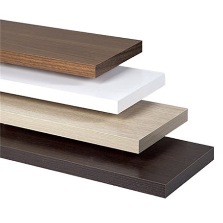Ripiani in melaminico bordati quattro lati. Pannello certificato E1.