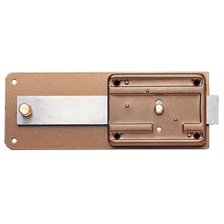 6 Mandate. Serratura da applicare per ferro con pomolo sblocca catenaccio interno. Cilindro fisso Ø 26x50 mm esterno. Bocchetta a cavallotto. In dotazione 3 chiavi.