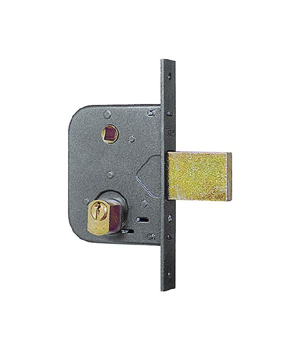 1 Mandata da 10 mm. Scatola e frontale zincati tropicalizzato. Funzionante con cilindro Ø 26 mm sfaccettato. Catenaccio prolungato e scrocco incorporato. Richiamo scrocco con chiave o quadro maniglia da 8 mm. Cilindro in dotazione con 3 chiavi. 2 ghiere in nylon per cilindro in dotazione.