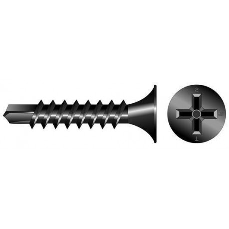 In acciaio fosfatate. Cava a croce PH. Espressamente impiegate per il fissaggio di pannelli di cartongesso su supporti metallici con capacità di foratura massima di 2,5 mm.