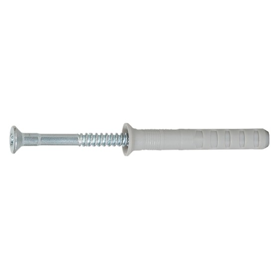 In nylon con vite a chiodo premontata. Per fissaggi su calcestruzzo, mattoni pieni, pietra naturale, blocchi di calcestruzzo alleggerito.