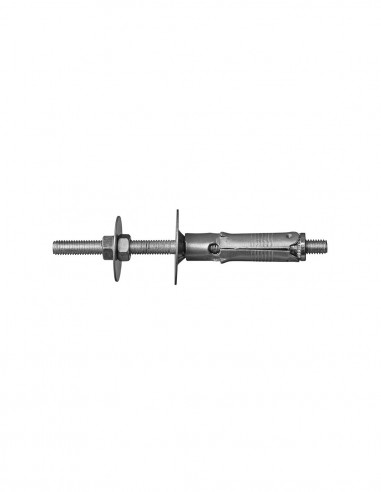 In acciaio con cono di espansione in acciaio, vite metrica e alette anti-rotazione che impediscono al tassello di ruotare all'interno del foro.