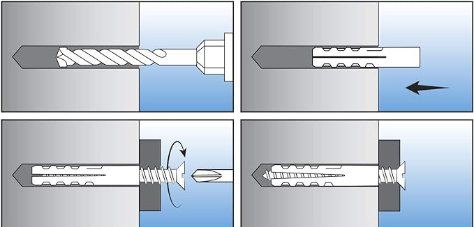 In nylon con alette antirotazione. Utilizzabile su tutti i materiali edili, calce.struzzo, mattoni pieni e forati. Con Bordo. Vite truciolare TSP taglio croce.