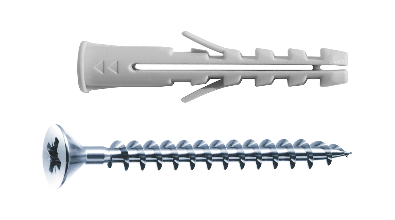In nylon con alette antirotazione. Utilizzabile su tutti i materiali edili, calcestruzzo, mattoni pieni e forati. Con Bordo. Vite truciolare TSP taglio croce