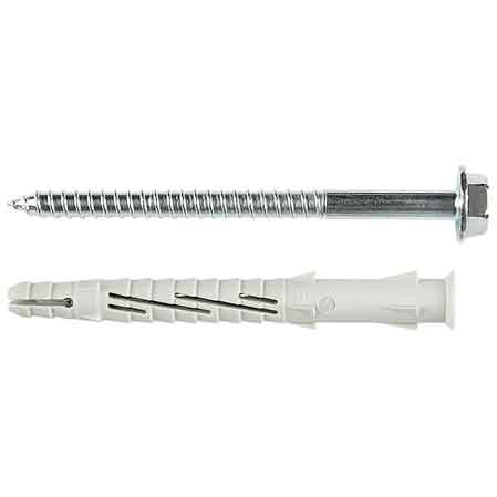 Tassello in nylon prolungato con bordo svasato con speciali alette antirotazione brevettato. Completo di speciale vite a legno Testa esagonale falsa rondella con impronta a 6 lobi certificato ETA-CE. Per fissaggi di tipo universale (Murature piene, Materiale vuoti, Murature forate, Calcestruzzo aerato autoclavato).