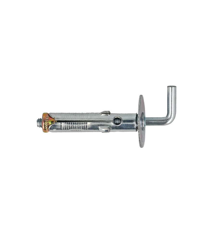 Tassello in acciaio zincato con dadino conico. Assemblato con accessori in acciaio zincato. Di grande versatilità. La particolare forma prolungata permette di eseguire anche fissaggi passanti. Idoneo per ancoraggi leggeri e medio leggeri di elementi vari (anche pensili). Dotato di alette antirotazione.