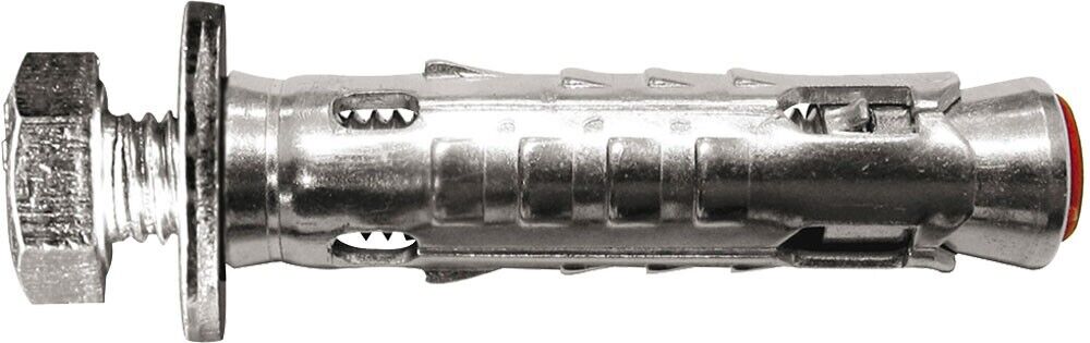 Ancorante in lamiera avvolta con cono agganciato. Dotato di piccole alette laterali antirotazione in acciaio zincato (esente da CrVI). Con vite Testa Esagonale DIN 933 di classe 8.8 e rondella in acciaio zincato (esente da CrVI). Per fissaggi su calcestruzzo, mattoni pieni, pietre e materiali compatti.
