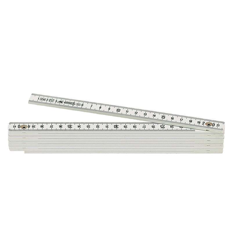 In fibra di vetro bianco. Graduazione incisa, snodi con doppia molla antiusura, scatto a 90°. Non conduttore, lavabile.