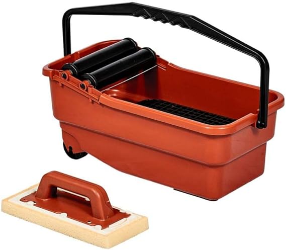 Capacità 10 lt. Ideale per eliminare l'eccesso di prodotto sigillante nella fase di sigillatura di pavimento e rivestimenti. 2 rulli inclinati di 15° per evitare che il frattazzo spugna entri in contatto con il bordo della vaschetta durante la spremitura eliminando così il rischio di sgocciolamento. Rulli dotati di argini laterali per convogliare l'acqua all'interno della vaschetta durante l'operazione di spremitura prevenendo il rischio di sgocciolamento. Realizzata in materiale plastico di prima qualità ed ultraresistente che garantisce una lunga vita ed una griglia robustissima. Fondo della vaschetta priva di angoli.
