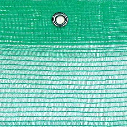 Tessuta in monofilo di polietilene ad alta densità, con occhielli in alluminio sulle cimose, colore verde.