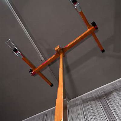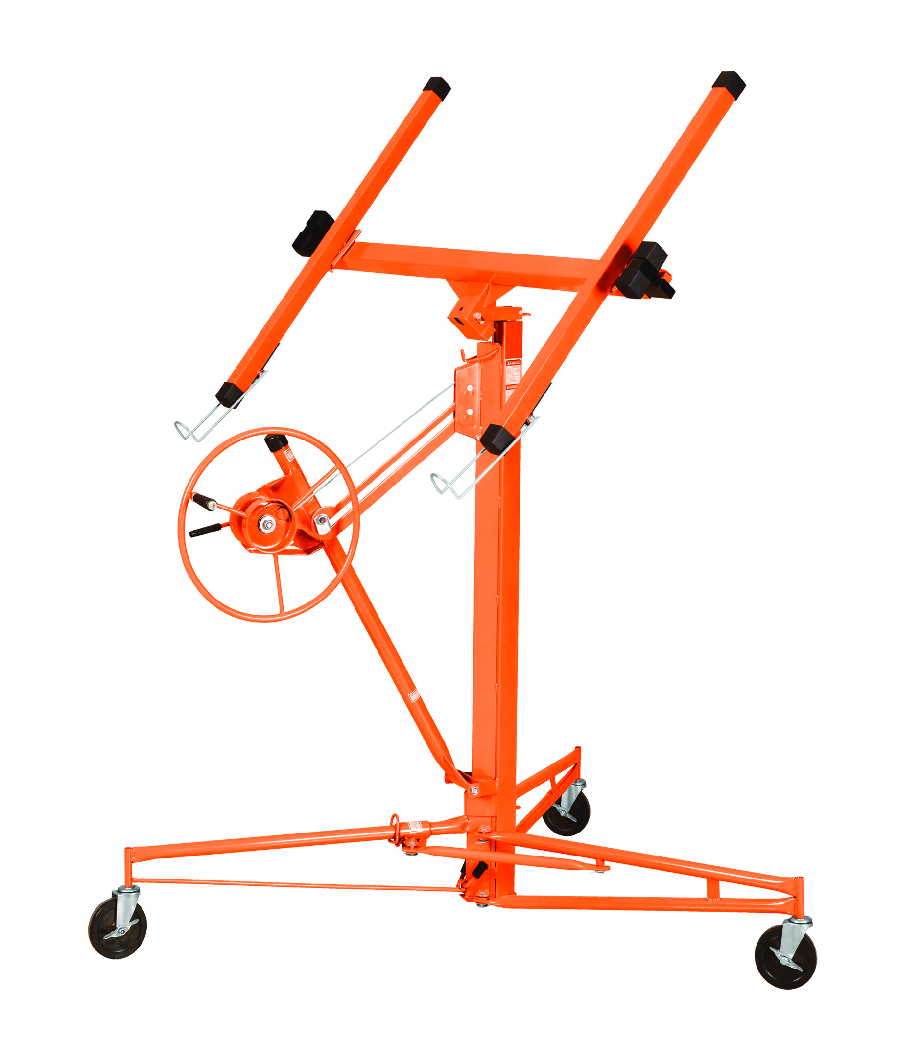 Carico massimo: 68 kg. Altezza massima di lavoro: 3,35 mt. Altezza minima di lavoro: 1,38 mt. Lunghezza del braccio: 90 cm + gancio di supporto. Apertura massima delle prolunghe: 2,94M. Apertura minima delle prolunghe: 1,25 M. Supporto piatto inclinabile di 60° e girevole di 360° in orizzontale; freno automatico. Supporto piatto espandibile a 3 posizioni. Estensioni retrattili. 3 ruote sterzanti da 10 cm di diametro con freno verricello con tubo. Peso 38 kg