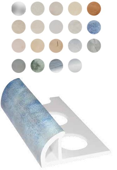 In materiale plastico termoindurente. Idoneo a proteggere gli angoli esterni dei rivestimenti e per la loro chiusura perimetrale.