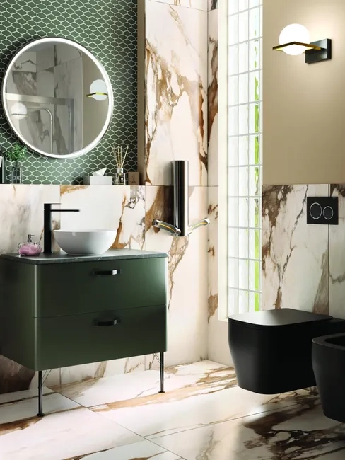 In vetro fuso, accoppiato e verniciato lateralmente per aumentarne la lucentezza.