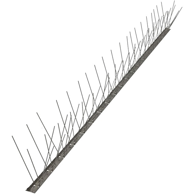 Base in policarbonato, spinotti in acciaio inox. Utilizzato per evitare lo stazionamento e la nidificazione dei volatili su cornicioni, davanzali, marcapiani ed elementi architettonici di facciata.