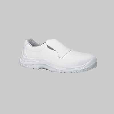 Scarpe antinfortunistiche bianche basse senza stringhe. Tomaia New Safety Dry idrorepellente . Fodera altamente traspirante in 3D. Puntale in acciaio. Coprisottopiede Flat-Fit . Intersuola soffice PU espanso . Suola PU compatto antiabrasione, antiolio, antiscivolo e antistatico . Classe di protezione S2 FO SR.